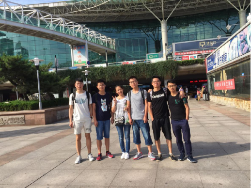 從西安到達(dá)山東省濰坊火車站時(shí)與同去的新同事合影(左一為耿濤濤)