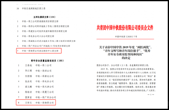 物貿(mào)公司團委獲股份公司2019年度信息工作先進單位榮譽稱號;西北物供中心團支部獲股份公司五四紅旗團支部榮譽稱號;高媛獲優(yōu)秀團干部榮譽稱號;東北物供中心劉魏榮獲青年崗位能手榮譽稱號;鋼結構制造分公司王培玉榮獲股份公司優(yōu)秀青年安全監(jiān)督崗崗員榮譽稱號;華北物供中心朱文濤等3名優(yōu)秀共青團員、西南物供中心竇平等4名優(yōu)秀團干部獲集團表彰。