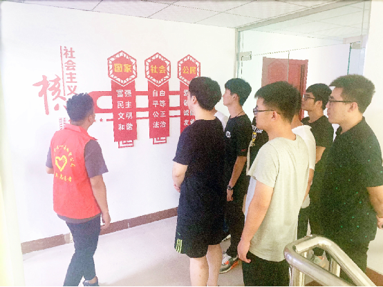 鋼結(jié)構(gòu)運(yùn)營中心青年志愿者帶領(lǐng)新員工參觀黨建區(qū)
