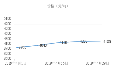2019年4月份,國(guó)內(nèi)鋼價(jià)整體拉漲,累計(jì)漲幅逾200元/噸,下半月漲勢(shì)逐步收窄。下圖為西安地區(qū)螺紋鋼HRB400EФ20mm價(jià)格走勢(shì)。
