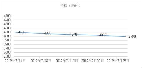 2019年7月份國內(nèi)鋼價(jià)窄幅下行,全月走勢以小幅陰跌為主,上下波動(dòng)不大。下圖為西安地區(qū)螺紋鋼HRB400EФ20mm價(jià)格走勢。