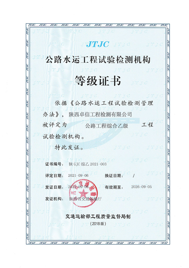 公路乙級資質(zhì)證書((陜GJC綜合乙2021-003號正本)2021.9.6