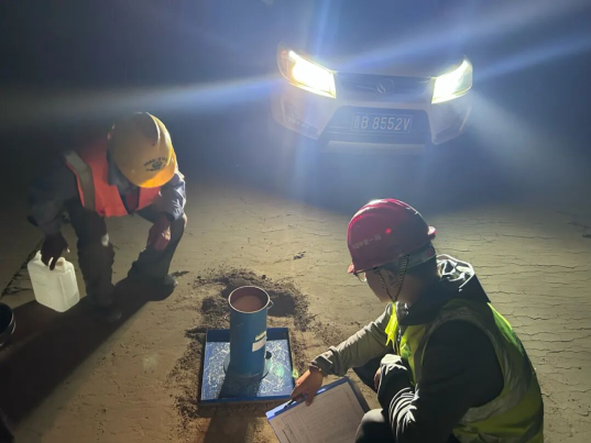 這個數(shù)字出現(xiàn)在屏幕上的瞬間,劉晨旭長長地呼出一口氣,白霧在燈光下翻滾上升。超過了規(guī)范要求的96%,壓實度合格。